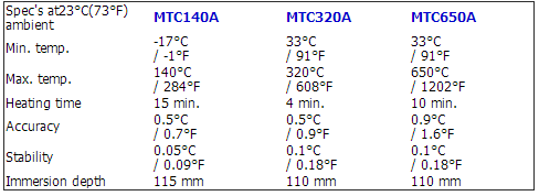 MTC係列包括3種型號,分別對應不同溫度範圍。所有型號都有RS232接口,JOFRACAL 校準軟件為標準配置。