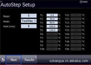 zui多可以設定20步自動步進,包括每一步的保持時間.完成一個自動步進過程以後,用戶可以方便的讀出被檢探頭的讀數.zui多可以存儲20組自動步進測試數據。
