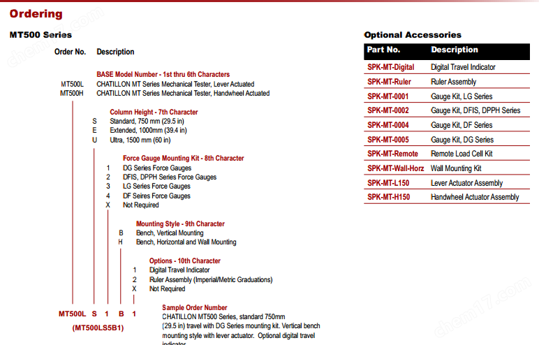 MT500力學測試儀Chatillon®MT500係列機械試驗台測力應用到500磅(2.5千牛)是一個易於使用的解決方案的能力。這個試驗台可配備快速行動杠杆或精密控製十字頭速度和行程手輪。mt500試驗台可台安裝的,安裝的,牆壁安裝或水平安裝。垂直間隙可從750毫米(29.5英寸)高達1500毫米(60英寸)。標準行程為6英寸(150毫米),雖然更長的行程可以容納作為一種特殊的秩序。