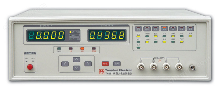 ■ TH2615F型大電容測量儀是一種專門針對大電容量電容器測試的高精度儀器,除了能測試容量、損耗外,還能測試電容的串聯等效電阻ESR以及阻抗,滿足生產線質量保證、進貨檢驗及實驗室高精確度測量要求。