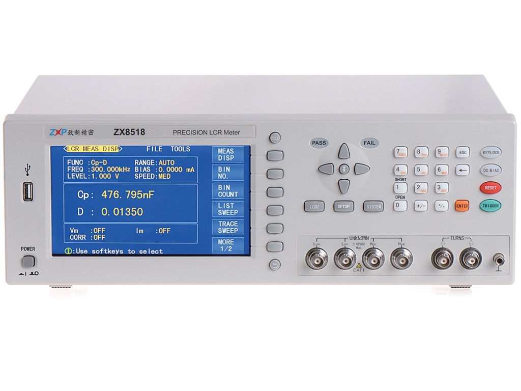 ZX85係列高頻LCR數字電橋:其高精度、寬頻率範圍可以滿足元件與材料絕大部分低壓參數的測量要求,可廣泛應用於諸如傳 聲器、諧振器、電感器、陶瓷電容器、液晶顯示器、變容二極管、變壓器等進行諸多電氣性能的分析及低ESR電容器和高Q電感器的測量。